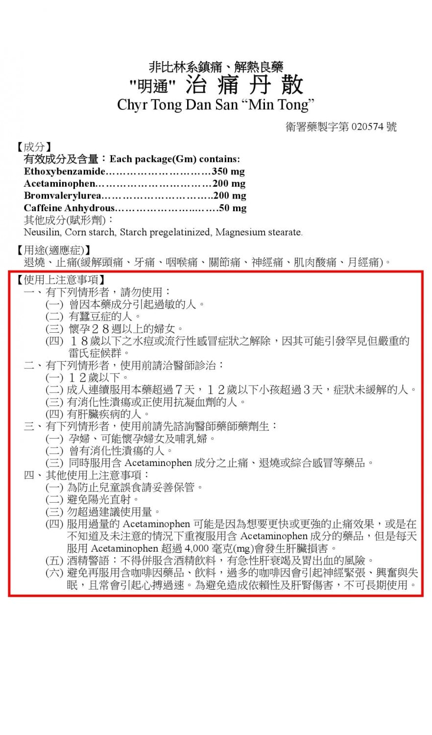 衛署藥製字第020574號